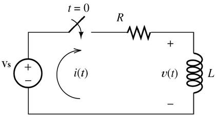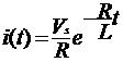 Vt(t) is the voltage across inductor. In eq. 4, it is noticed that in time L/R seconds, the voltage across the inductor reduces to 1/e of its original value and would go on decreasing by a further factor of 1/e in every L/R seconds thereafter. Another arrangement to study the transient is shown in Fig. 7. Initial current at t=0 is present through the inductor, at t=0+,