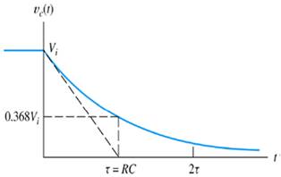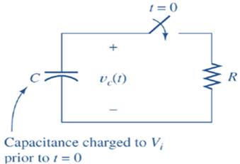 The capacitor C is initially charged with charging voltage Vi. When switch is closed at t=0+, the capacitor gets discharged through resistor R, with output voltage, as shown in Fig. 1.