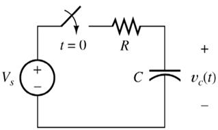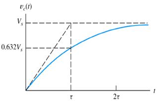 Another arrangement to study the transient is shown in Fig. 3. The circuit itself has a dc source, which charges the capacitor C through a resistor R and gives the output voltage vc(t). The time interval τ (= RC) is called as the time constant of the circuit. This is the time for decay to 63.2% of the initial value. The voltage vs time for the circuit, is shown in Fig. 4.