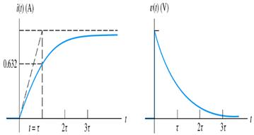 Fig:8: Typical waveforms i (t) vs t and v (t) vs t of RL circuit