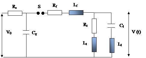 The one-stage equivalent, of an impulse voltage circuit with a capacitive load is shown in Fig. 9. Resistances, which are used in Marx circuit, are non inductive. All resistances have some small internal inductances, which leads to the inefficient outputs. The inductance Lf represents the loop inductance offered by the front resistance that is responsible for the overshoot of lightning impulse (LI) which must be limited to below 5%. Similarly Lt is the inductance offered by the tail resistance of the impulse circuit. These inductances are incorporated in the equivalent circuit to give the VHVL a more realistic feel.